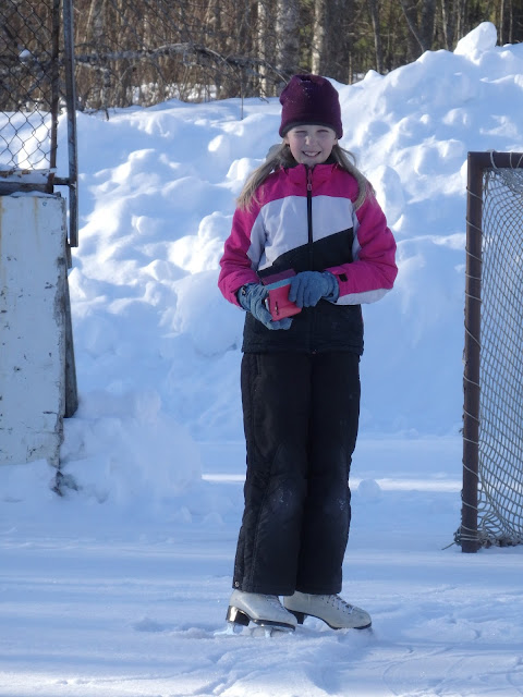 Tytöt toivoivat, että heitä vietäisiin koulun jäälle luistelemaan.  Heillähän on nyt loma ja aikaakin siten runsaasti käytössä. En ollut itse yhtään innostunut, mutta lähdin sitten kuitenkin. Kaivoin jopa omatkin luistimeni esiin,  ne joita jo lapsuudessani käytin... siellä 70-luvulla. Ne näyttävät vielä kohtuullisen hyviltä, mutta eivät sitä ihan ole. Pohjat irvistävät jo kantapäistä. En tiedä, onko niille enää mitään tehtävissä, se jää nähtäväksi. Luistelin niillä silti, kun tiesin, että luisteluni on kuitenkin hyvin varovaista ja vähän pohjaruuvejakin kiristeltiin.  Mietin, että jos vaikka en enää noilla luistelekaan. Tosin, jos kerran vuodessa luistelee, samoin kuin nytkin, eipä tilanne luistinten osalta välttämättä kovasti muutukaan.